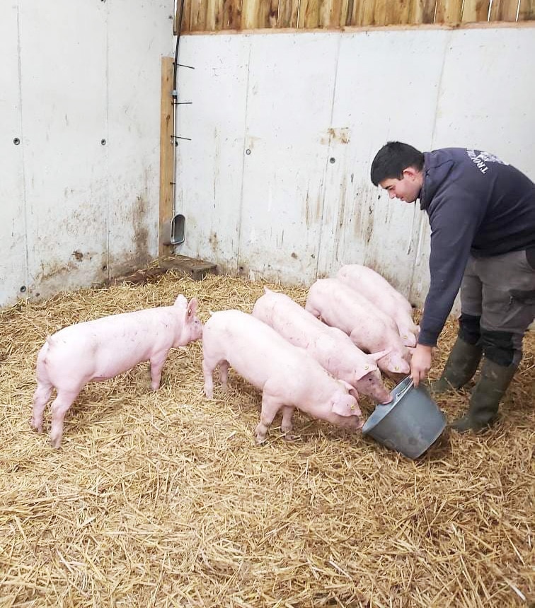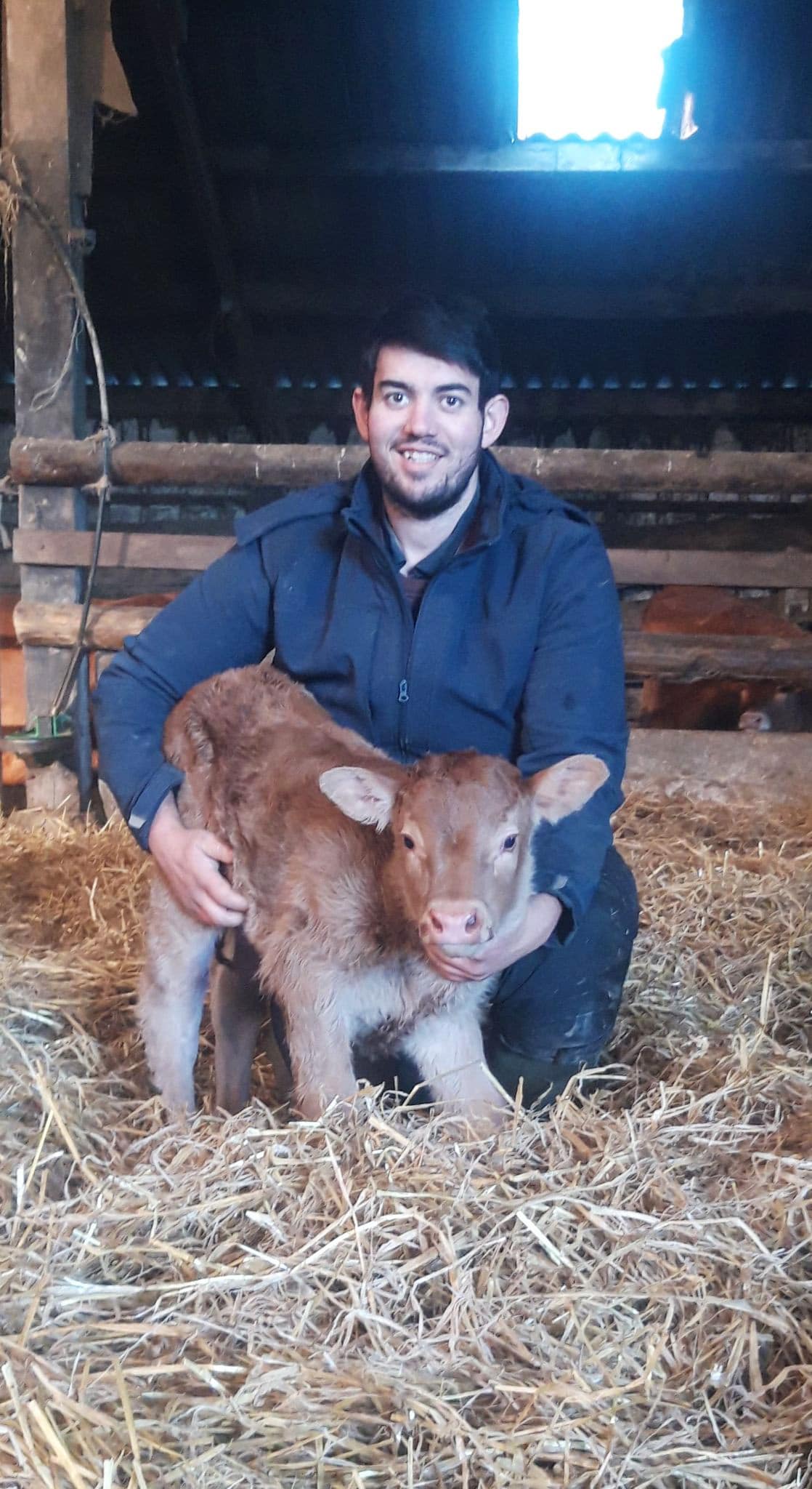 C’est Adrian, 25 ans, qui gère le troupeau de vache allaitante et les cochons, élevés sur paille.