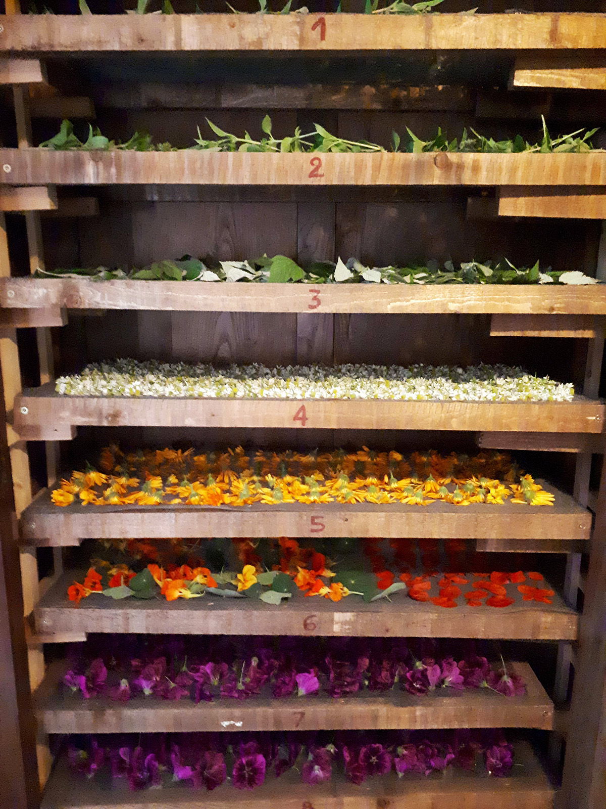 Toutes mes récoltes, ainsi que mes cueillettes sauvages, sont transformées artisanalement sur place : tisanes, confitures et gelées, sirops, aromates, vinaigres aromatisés…