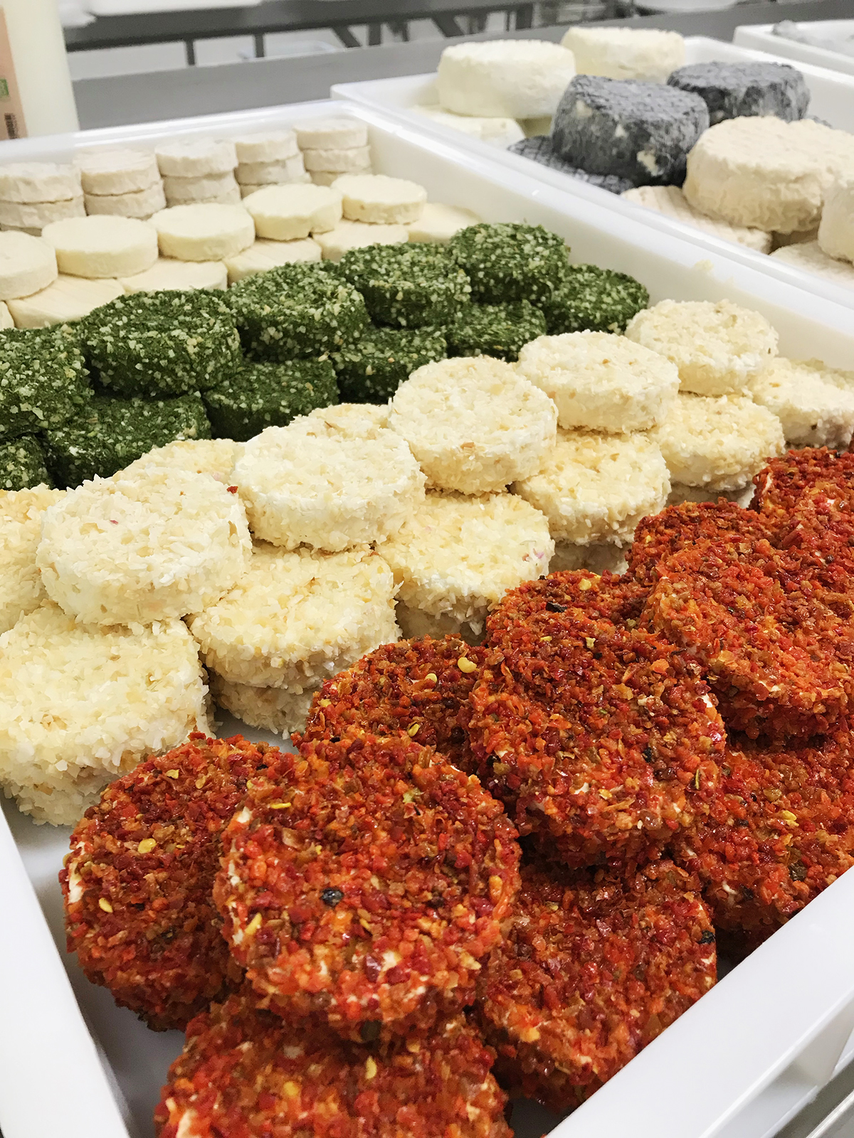 Nous faisons aussi des petits formats aromatisés idéal pour l’apéro : ail et fines herbes, poivron, oignon et échalotte ainsi qu’un fromage frais ail et fines herbes à tartiner type Boursin : le Tartibique.